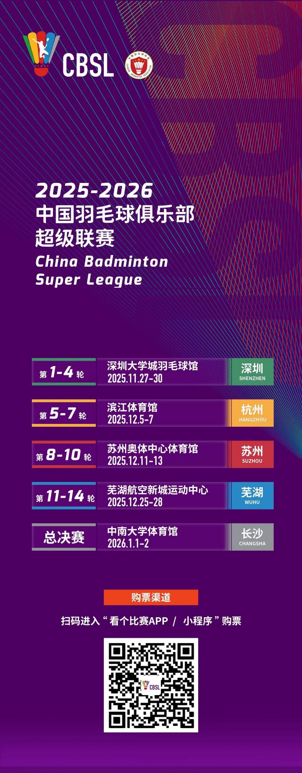 温馨提示:微信搜索并关注公众号【芜湖本地宝】,进入后台主页在下方聊天对话框回复关键词【羽超】即可获取2025-2026羽超联赛购票入口、票件档次、赛程安排、参赛俱乐部名单、参赛球员名单等更多相关信息。